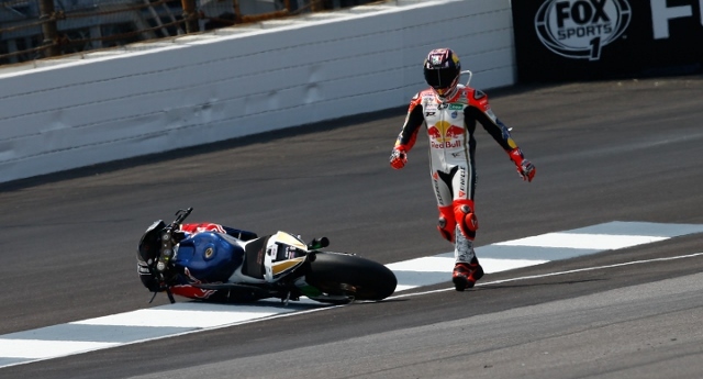 Ο συναθλητής του Iannone στην δορυφορική ομάδα της Ducati, o Ben Spies, συνεχίζει στο ίδιο μοτίβο κακοτυχίας που τον κατατρέχει από πέρυσι. Μόλις έγινε καλά ο δεξιός ώμος του, έβγαλε τον αριστερό και έσπασε τον καρπό του δεξιού του χεριού, πέφτοντας άσχημα από highside. Αποκλείστηκε η συμμετοχή του Spies στον αγώνα, και μάλλον χάνει τον επόμενο στο Brno, ενώ η καριέρα του κινδυνεύει πλέον να τερματιστεί πρόωρα.