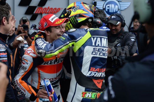 Στην ερώτηση αυτή ο Rossi απαντά με μια συμβουλή προς τον πανγρήγορο Ισπανό: «Ο Marc πρέπει να μεταπηδήσει στη F1». Γελάει καθώς το λέει. «Είναι μια πολύ καλή ιδέα. Μπορώ να τον βοηθήσω μάλιστα… Εντάξει, πλάκα κάνω. Η αλήθεια είναι πως ο Marc εκμεταλλεύεται τα πλεονεκτήματα της Honda με μοναδικό τρόπο αλλά και σύνεση».