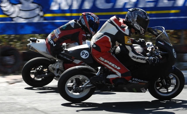 Ο Παπαπαύλου πέρασε αμέσως επικεφαλής, αλλά ο Καρακώστας ακολούθησε και λίγο αργότερα πέρασε μπροστά για να τον ξαναπεράσει ο Παπαπαύλου σχεδόν αμέσως. Απάντησε με νέα προσπέραση ο Καρακώστας σε ένα λαθάκι του Παπαπαύλου, ο οποίος έμεινε λίγο πίσω αλλά ξαναπλησίασε τον Καρακώστα και στο τελευταίο γύρο, στην προσπάθειά του να περάσει εμπρός, εμβόλισε τον πίσω τροχό του Καρακώστα.