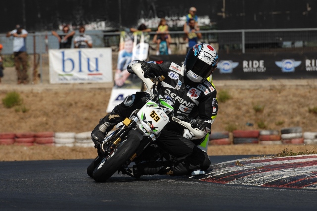 Με το σβήσιμο των φώτων εκκίνησης, ο 14χρονος Δημήτρης Καρακώστας (ΑΡΗΣ, IMR) και ο poleman Παναγιώτης Παπαπαύλου (ΛΕΜΟΤ, Honda) πετάχτηκαν μπροστά και ξεχύθηκαν σε μια φοβερή μονομαχία οδηγώντας εκπληκτικά γρήγορα.