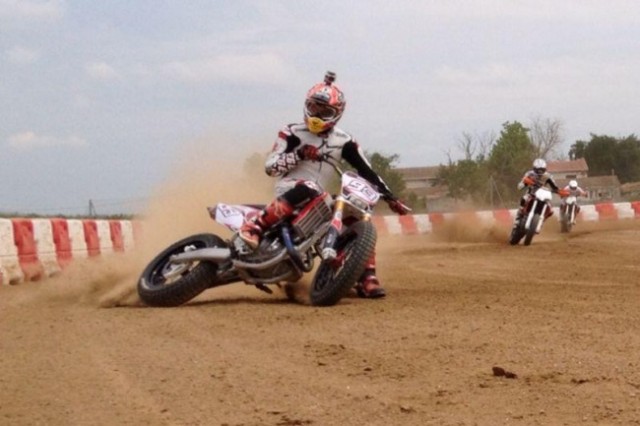 Για να πάρετε μια γεύση από το είδος αυτό, δείτε στο βίντεο έναν συγκλονιστικό στην εξέλιξή του αγώνα από το υψηλότερο επίπεδο οδηγών flat track στον κόσμο, το πρωτάθλημα ΑΜΑ των ΗΠΑ. Ο Brad «The Bullet» Baker σε μια επική διεκδίκηση του τίτλου…