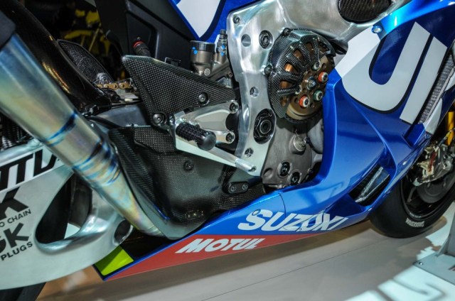 Ουσιαστικά ξεκινά από μηδενική βάση χτίζοντας τη μοτοσυκλέτα από την αρχή. Με δυσκολότερο το κομμάτι της κατανάλωσης σε συνδυασμό με την απόδοση, η Suzuki έχει αρκετό δρόμο στην εξέλιξη ώστε να πιάσει τα επίπεδα του ανταγωνισμού στο θέμα αυτό, τον μεγάλο πονοκέφαλο των τμημάτων εξέλιξης όλων των κατασκευαστών στο MotoGP.
