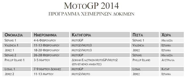 Επίσημο πρόγραμμα δοκιμών MotoGP 2014