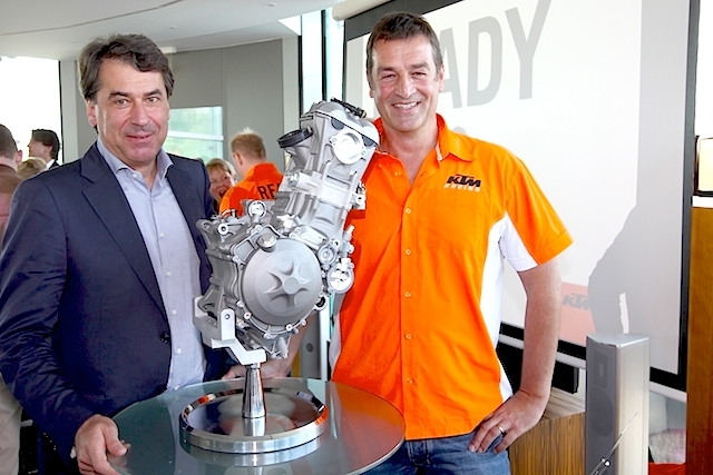 Στη φωτογραφία ο Stefan Pierer με τον μηχανικό Kurt Trieb, κατά την παρουσίαση του κινητήρα Moto3 τον Οκτώβριο του 2011.
