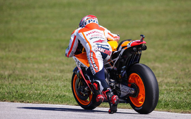 Ο Marquez οδηγούσε στο όριο, αν και ο ίδιος δεν το παραδέχτηκε μετά τον αγώνα. Ωστόσο στον 10ο γύρο έκανε το λάθος. Μπαίνοντας πολύ κλειστά στη αργή δεξιά Κ4, πάτησε στο κράσπεδο, το μπροστινό γλίστρησε γλυκά και τον άδειασε μαλακά στην άσφαλτο.