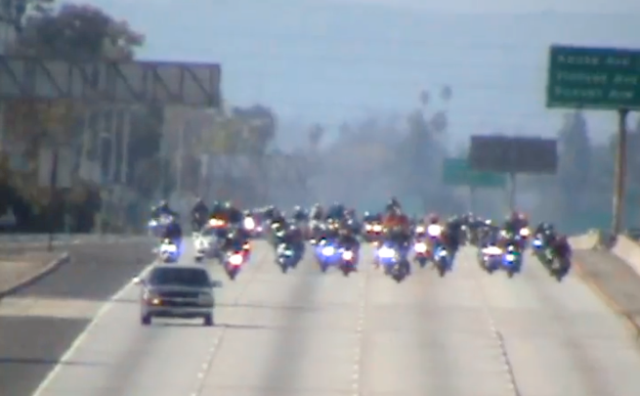 Συνέβη σε αυτοκινητόδρομο, ανατολικό Λος Άντζελες. Στο σχετικό βίντεο βλέπουμε τον Έκτορα «το τανκς» Μαρτίνεζ να οδηγεί στον αυτοκινητόδρομο, ακολουθούμενος από 100 τουλάχιστον ακόμα μοτοσυκλετιστές. Στην αρχή η αρμάδα έμοιαζε με φιλήσυχη εκδρομή κάποιας λέσχης.
