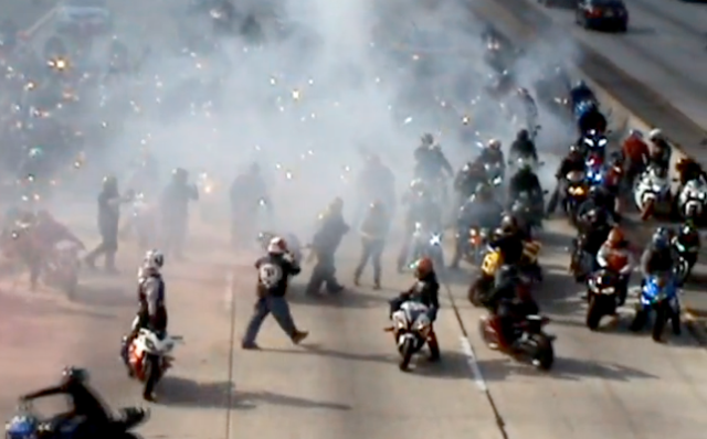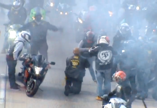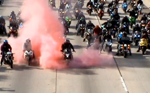 Ωστόσο σιγά – σιγά διακρίνουμε στο βίντεο κάποιες σούζες, κάποια burn-out. Οι μοτοσυκλετιστές άρχισαν να αναπτύσσονται με τέτοιο τρόπο, που δεν υπήρχε περίπτωση να περάσει ανάμεσά τους αυτοκίνητο. Οι υπόλοιποι οδηγοί αναγκάστηκαν να παρακολουθούν από πίσω τα δρώμενα, χωρίς πιθανότητα αντίδρασης.