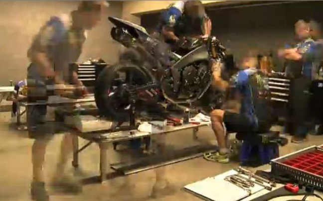 Την απάντηση δίνει η ομάδα της Monster Yamaha USA που συναρμολογεί όχι ένα αλλά δύο (το άλλο στο βάθος), Yamaha YZF-R1 για χρήση σε αγώνα Superbike.