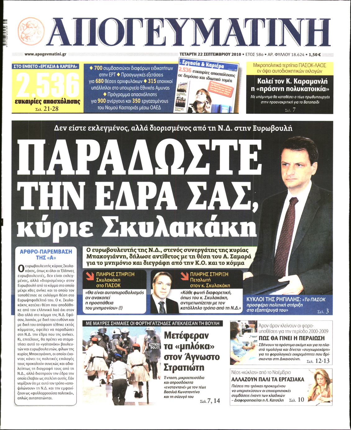 Τετάρτη, 22 Σεπτέμβριος 2010