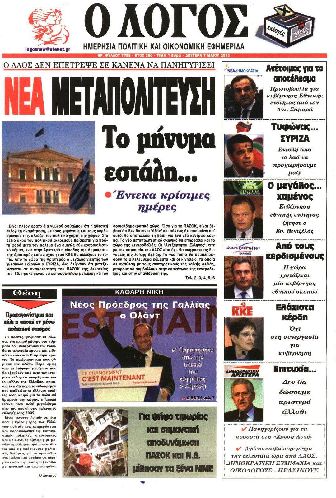 Για να δείτε όλα τα πρωτοσέλιδα πατήστε εδώ