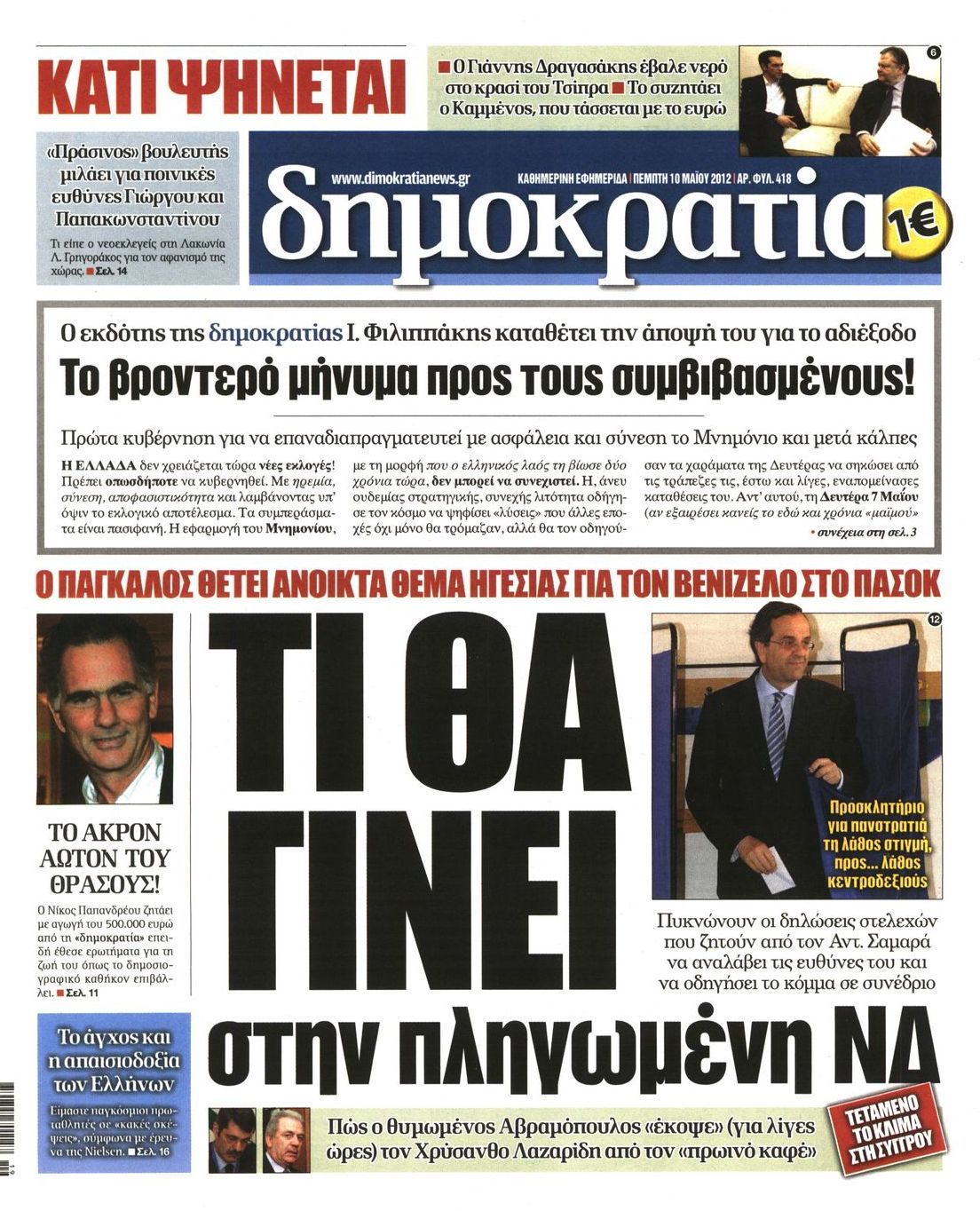Για να δείτε όλα τα πρωτοσέλιδα πατήστε εδώ