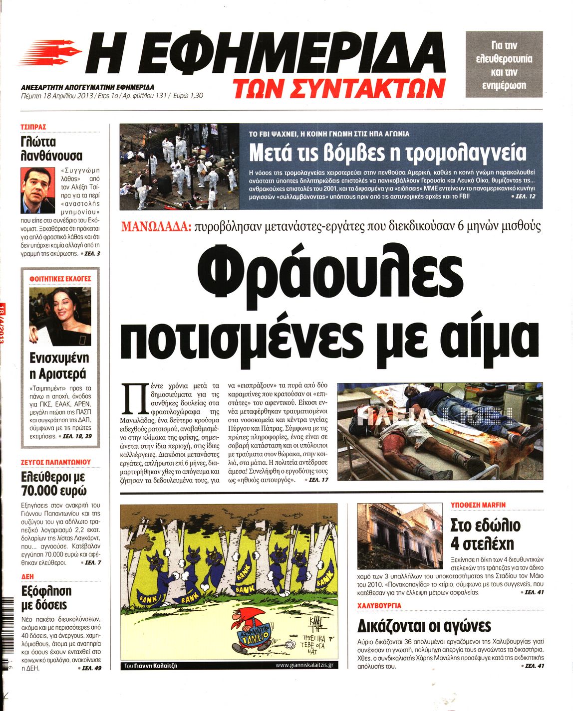 Για να δείτε όλα τα πρωτοσέλιδα πατήστε εδώ