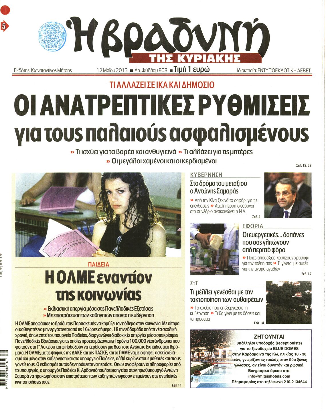 Για να δείτε όλα τα πρωτοσέλιδα πατήστε εδώ