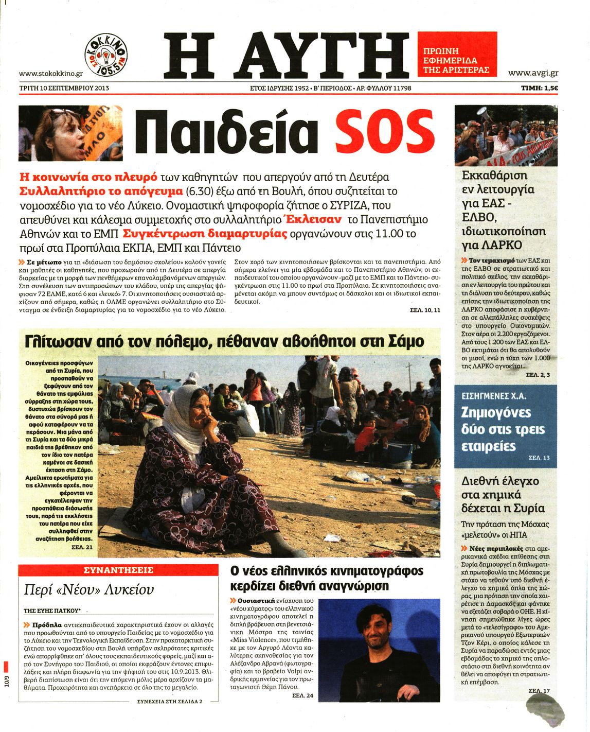 Για να δείτε όλα τα πρωτοσέλιδα πατήστε εδώ