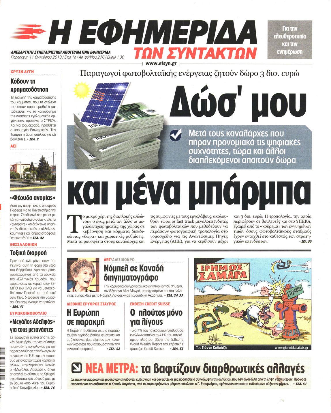 Για να δείτε όλα τα πρωτοσέλιδα πατήστε εδώ