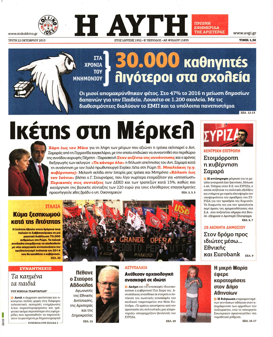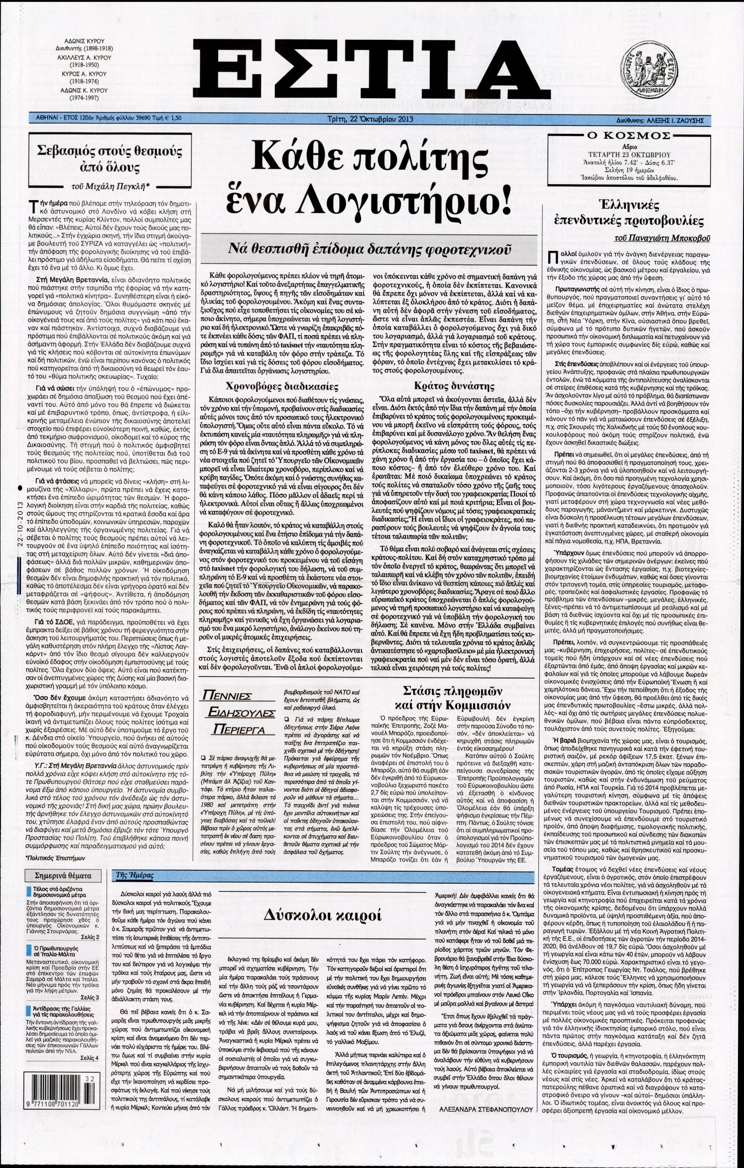Για να δείτε όλα τα πρωτοσέλιδα πατήστε εδώ