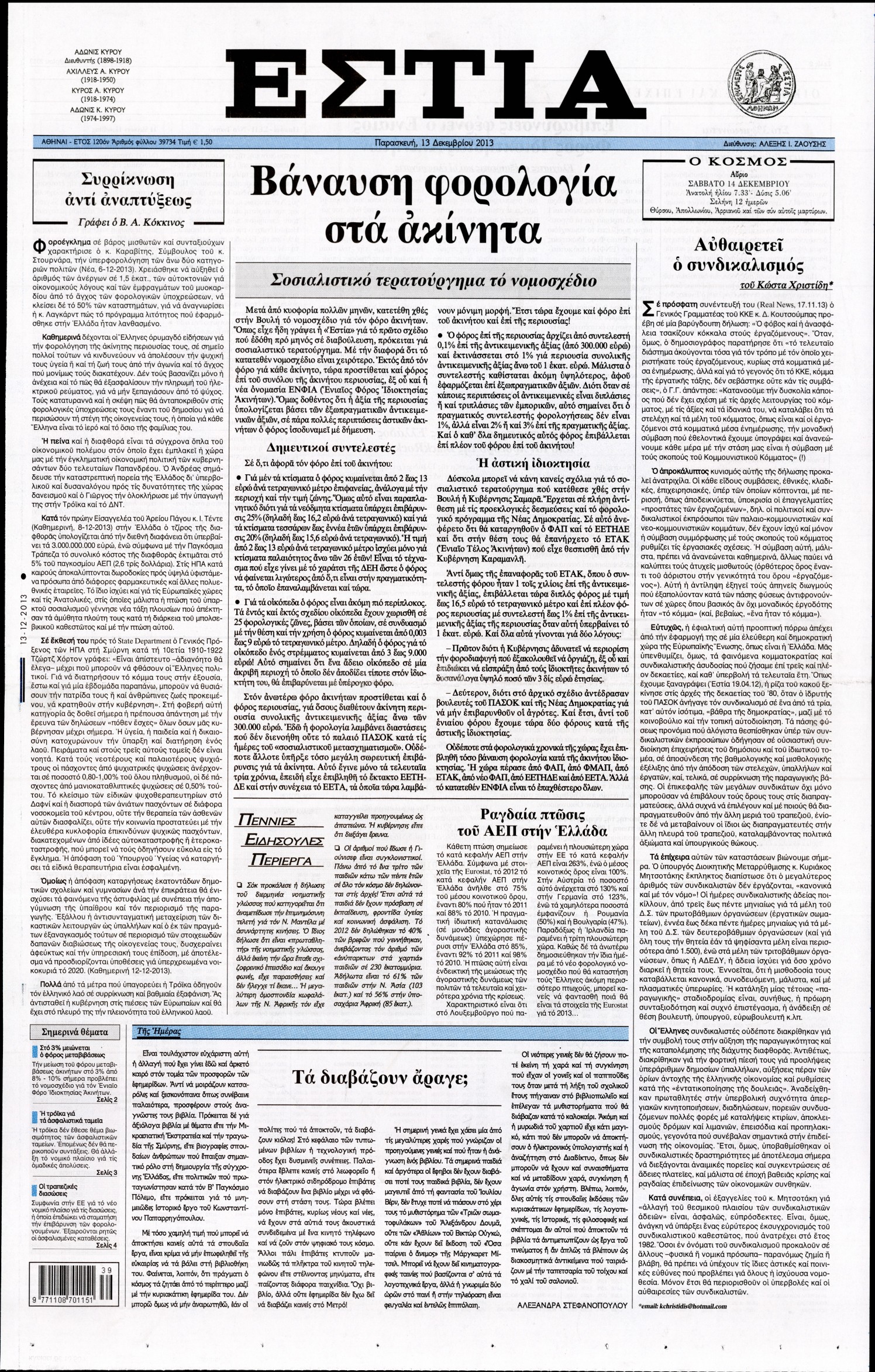 Για να δείτε όλα τα πρωτοσέλιδα πατήστε εδώ