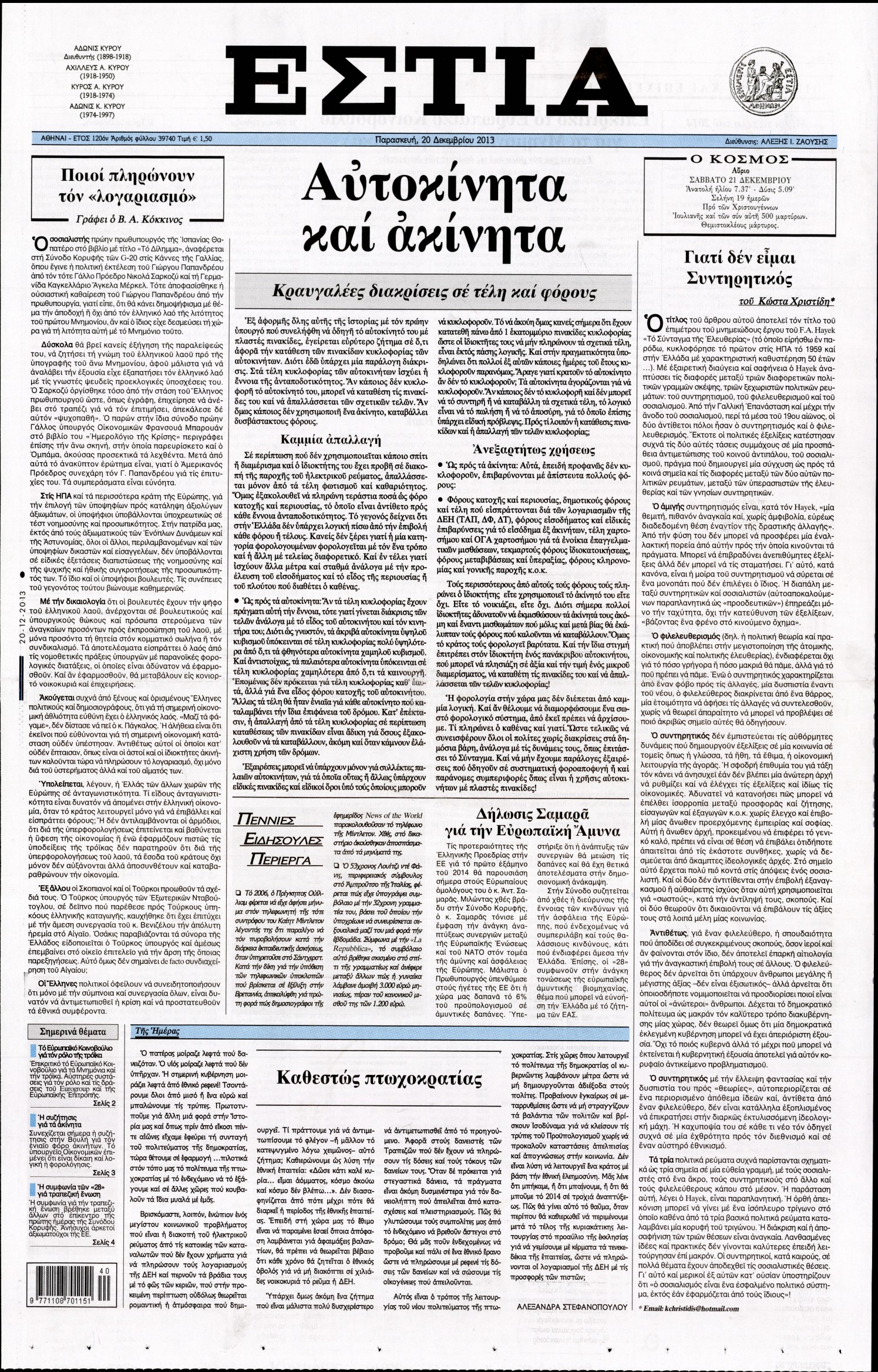 Για να δείτε όλα τα πρωτοσέλιδα πατήστε εδώ