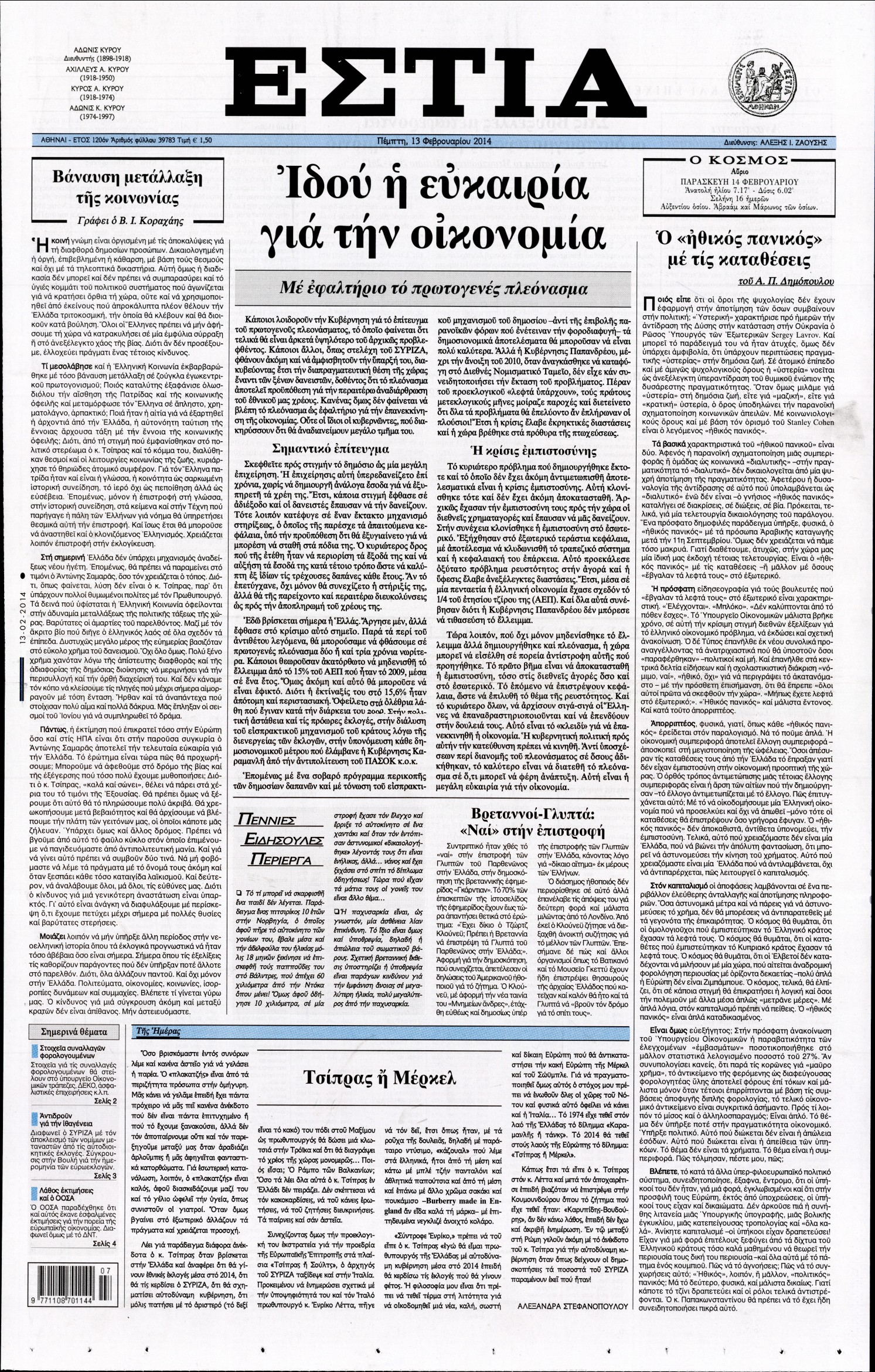 Για να δείτε όλα τα πρωτοσέλιδα πατήστε εδώ