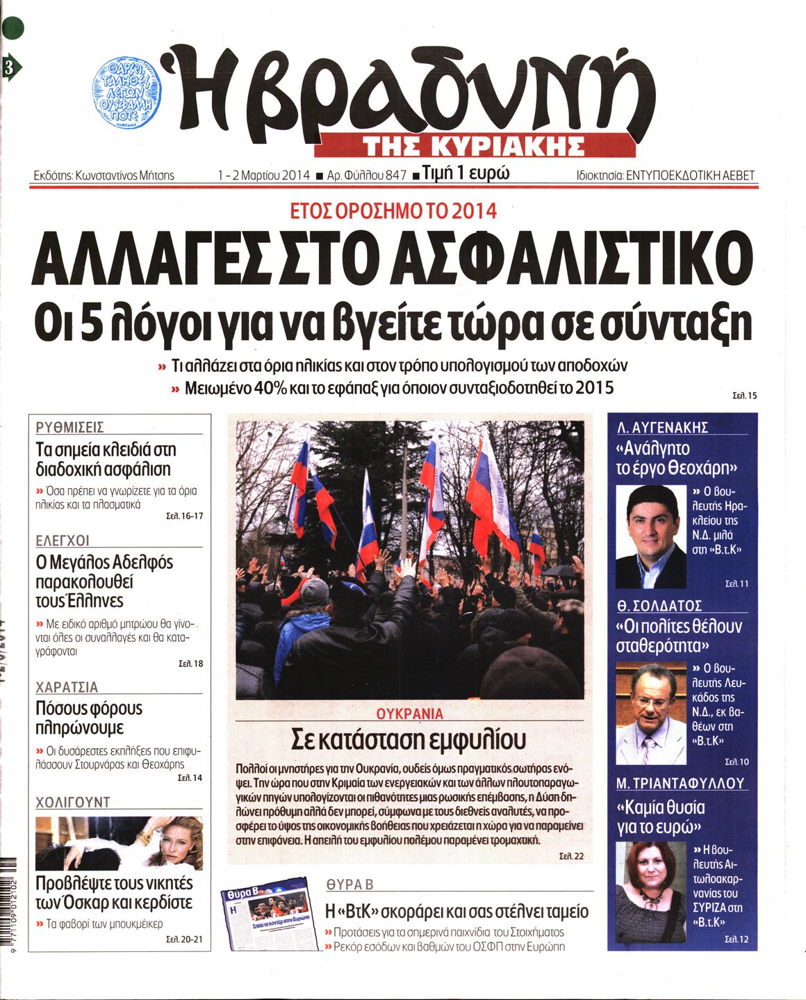 Για να δείτε όλα τα πρωτοσέλιδα πατήστε εδώ