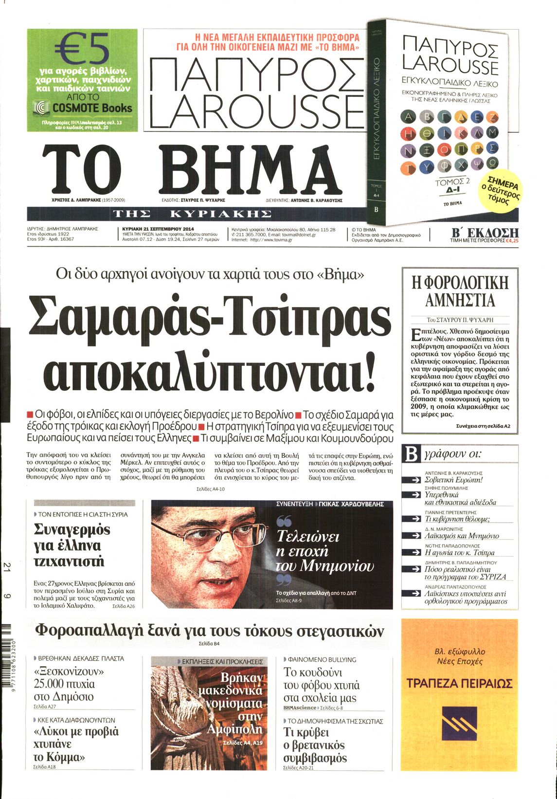Για να δείτε όλα τα πρωτοσέλιδα πατήστε εδώ