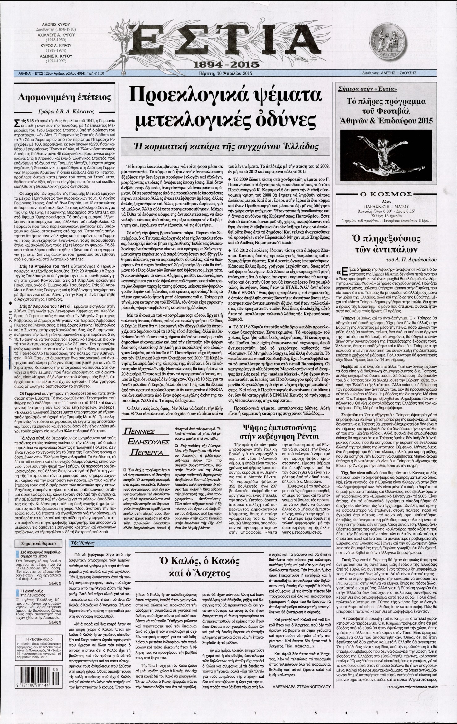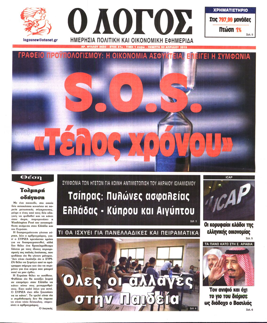 Πέμπτη, 30 Απρίλιος 2015