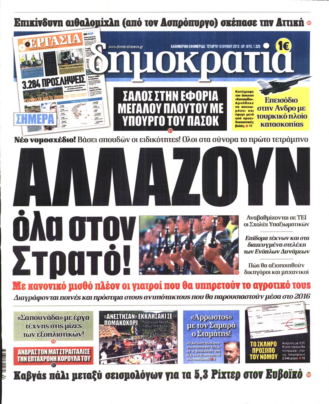 Για να δείτε όλα τα πρωτοσέλιδα πατήστε εδώ