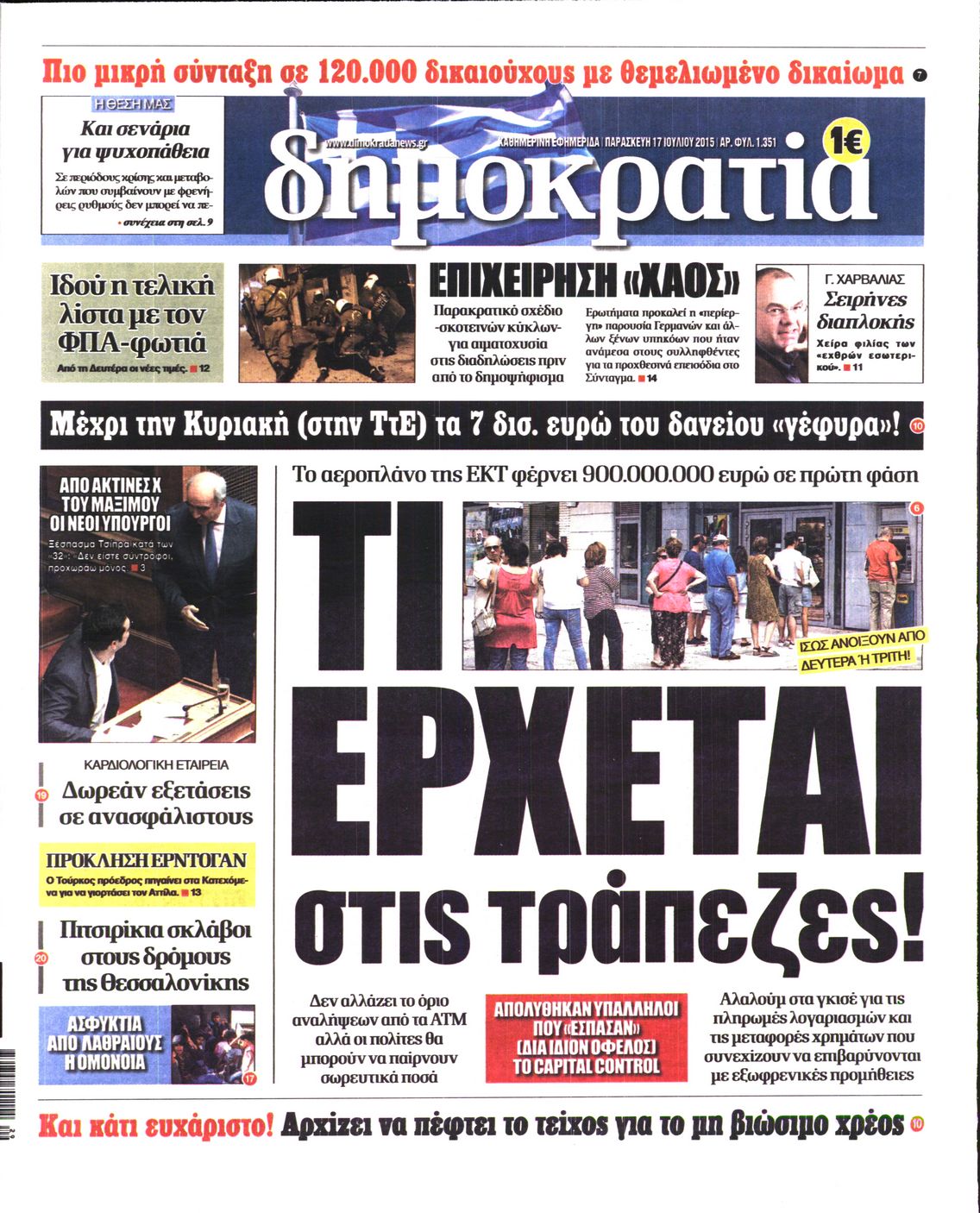 Για να δείτε όλα τα πρωτοσέλιδα πατήστε εδώ