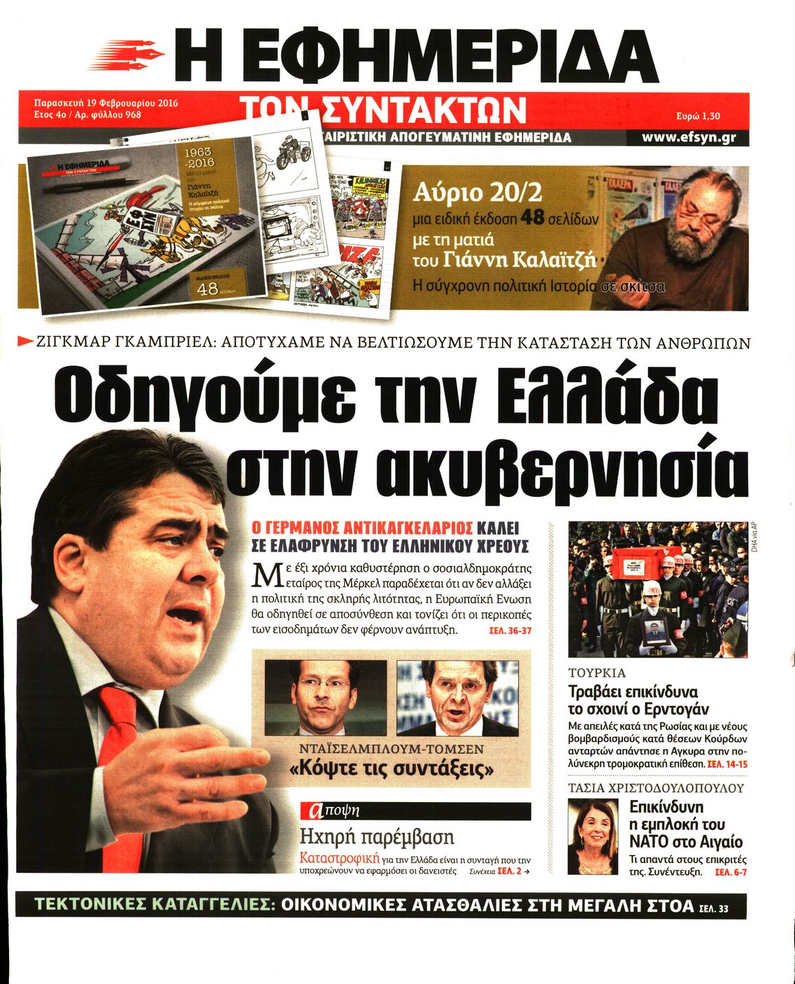 Για να δείτε όλα τα πρωτοσέλιδα πατήστε εδώ
