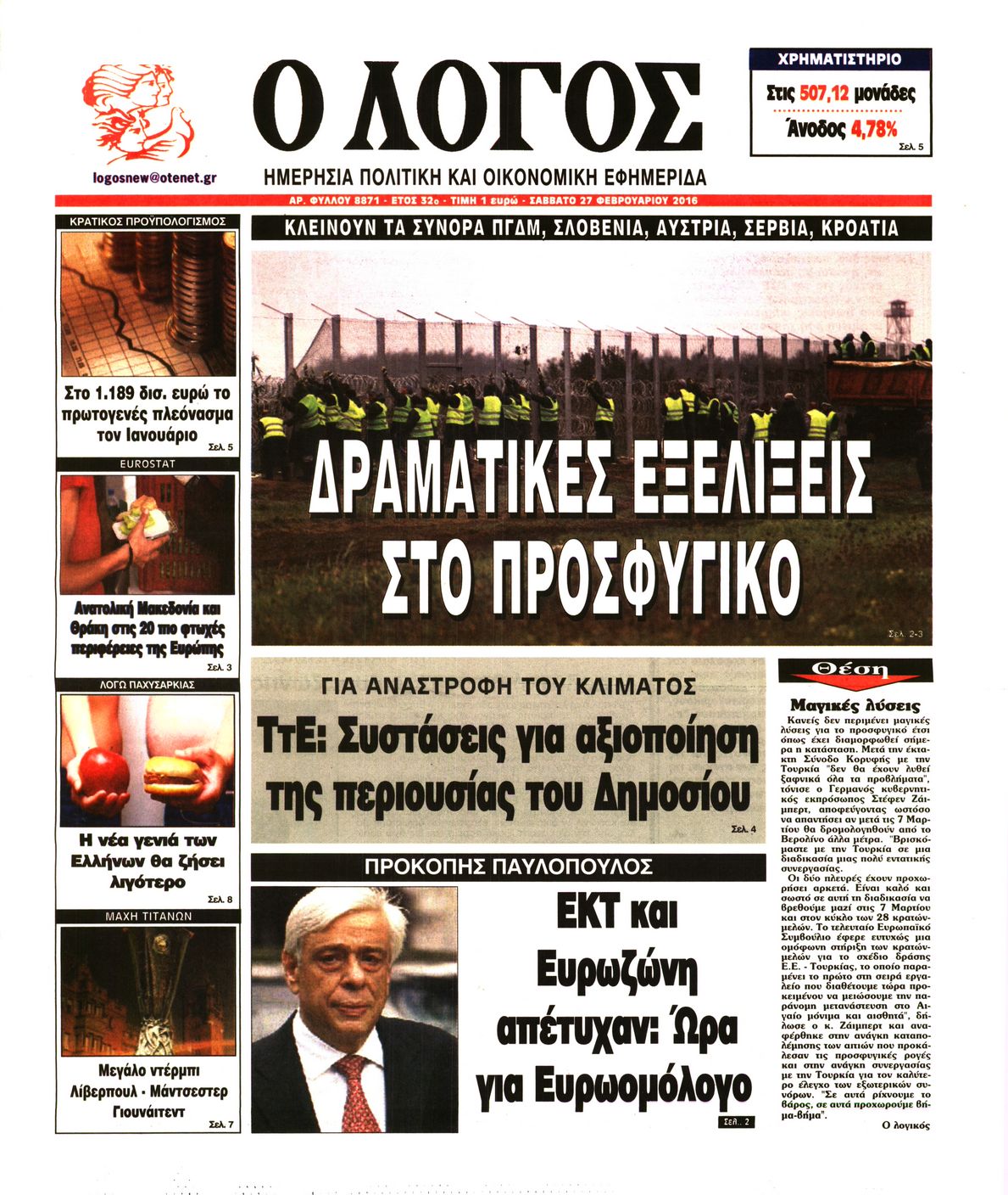 Για να δείτε όλα τα πρωτοσέλιδα πατήστε εδώ