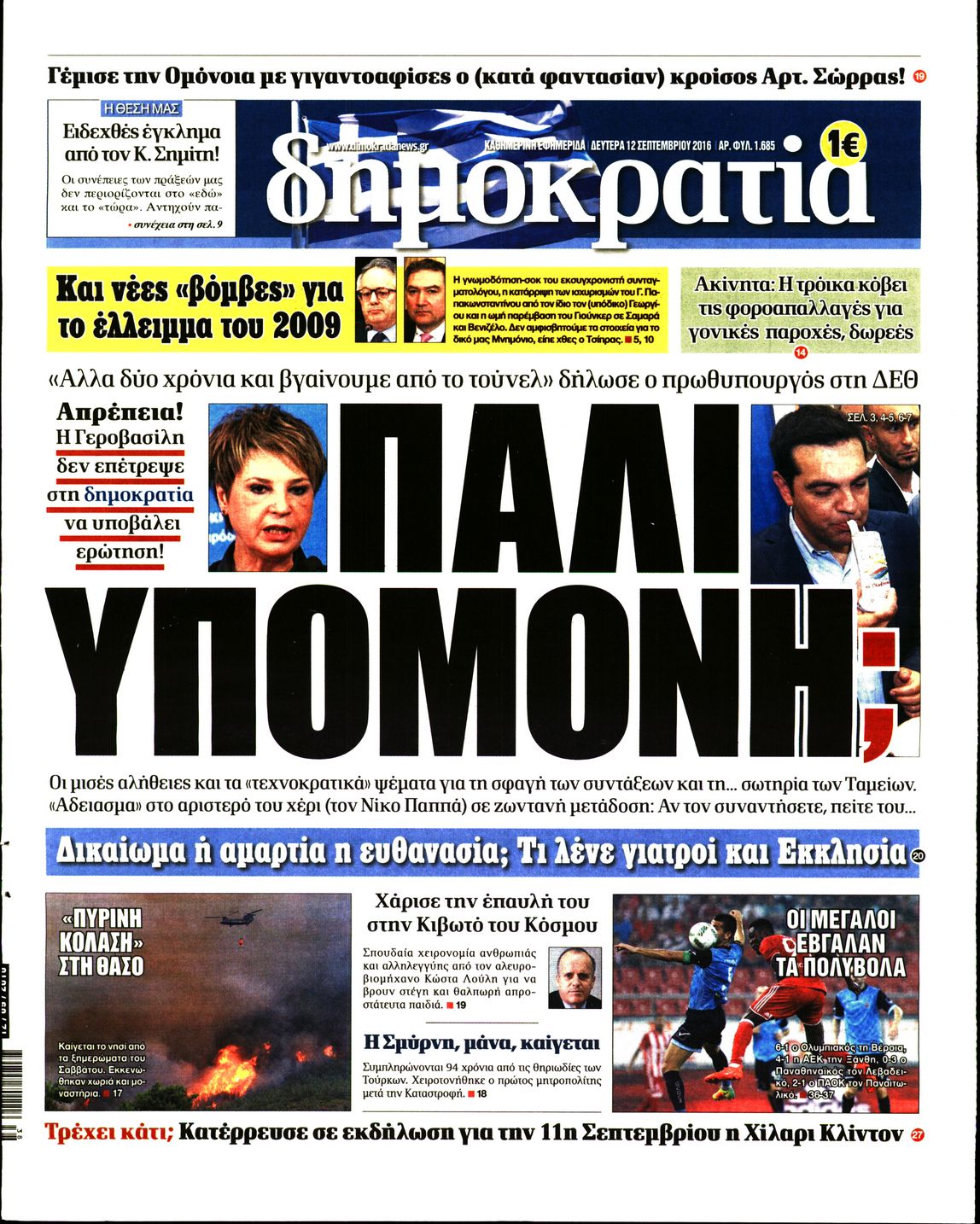 Δευτέρα, 12 Σεπτέμβριος 2016
