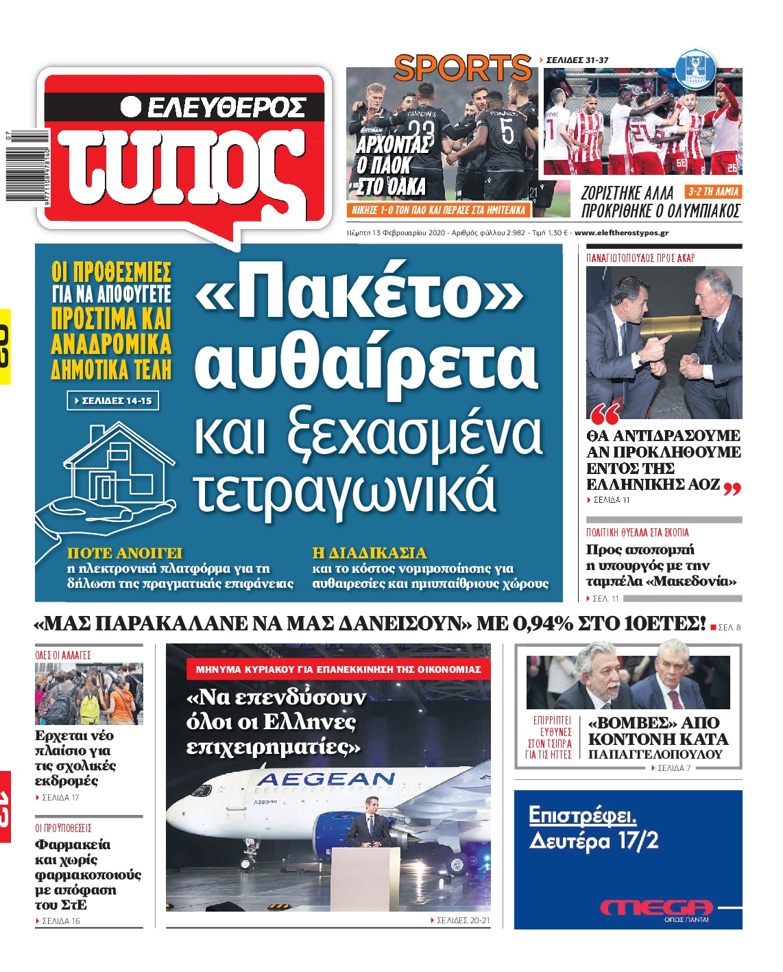 Για να δείτε όλα τα πρωτοσέλιδα πατήστε εδώ