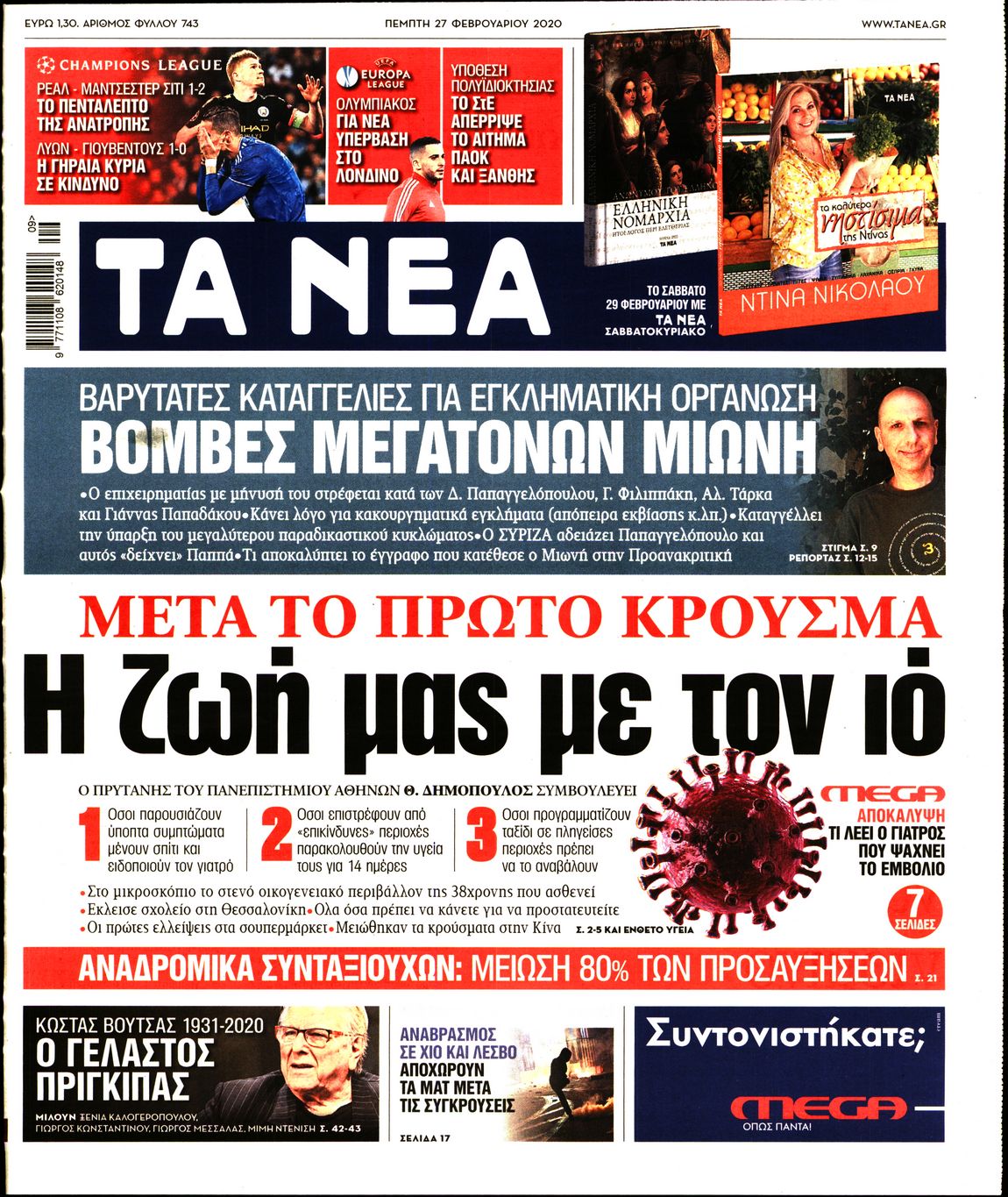 Για να δείτε όλα τα πρωτοσέλιδα πατήστε εδώ