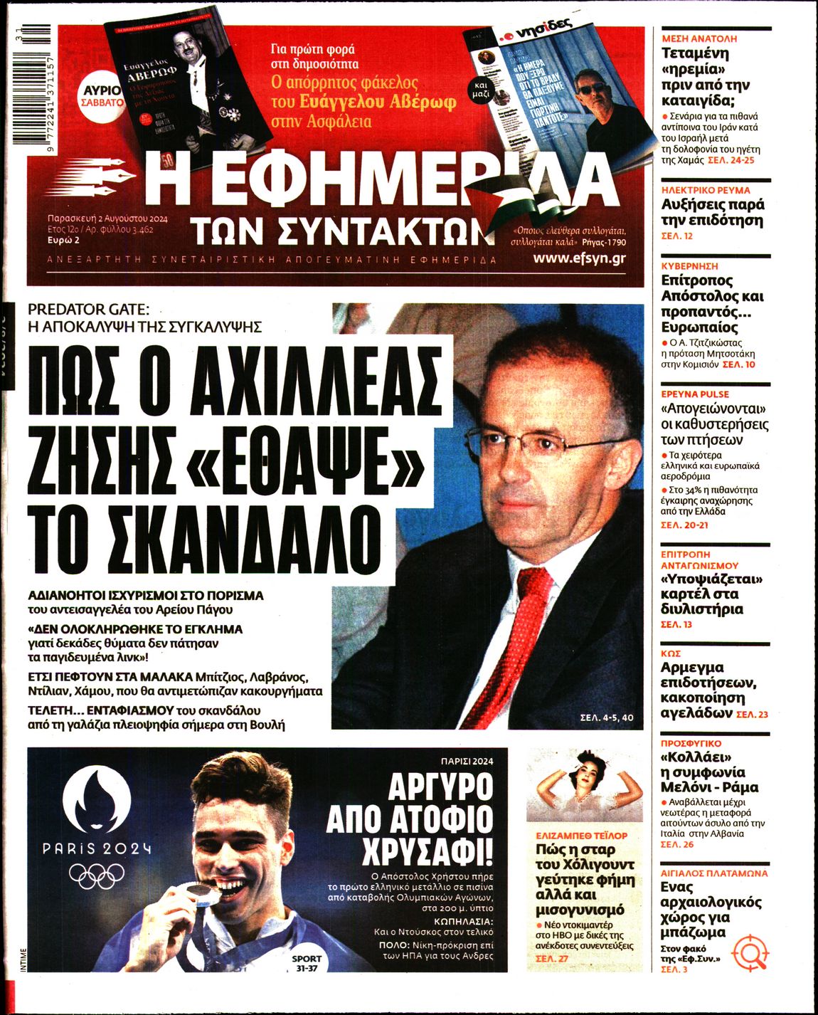 Τα πρωτοσέλιδα των εφημερίδων που κυκλοφορούν σήμερα.