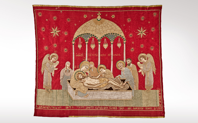 Χρυσοκέντητος μεταξωτός επιτάφιος, έργο της φημισμένη κεντήστρας Δεσποινέτας.