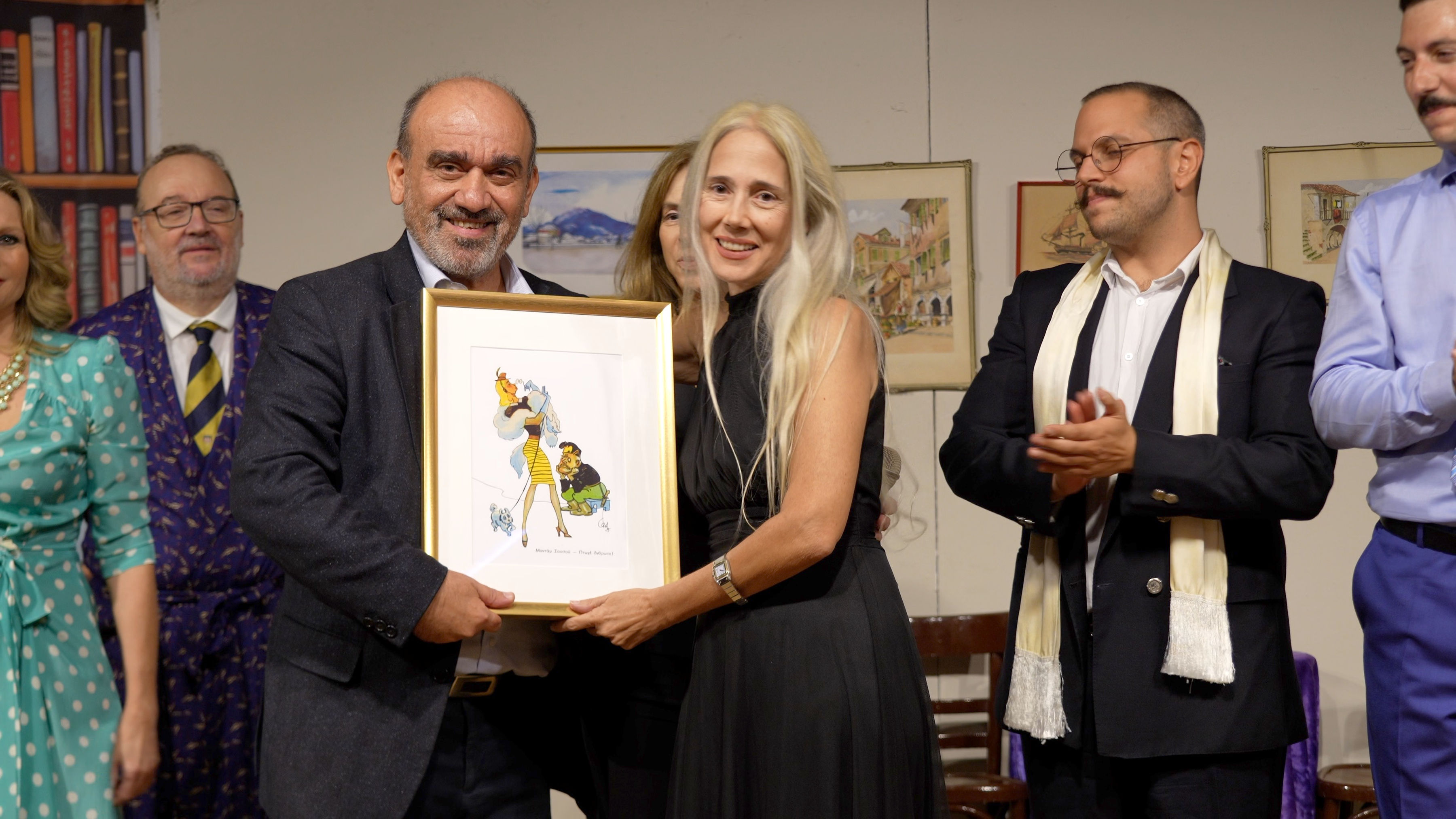Έκείνη με την σειρά της, αφού τον ευχαρίστησε για το τιμητικό αφιέρωμα, του προσέφερε μια γκραβούρα εποχής της ηρωίδας του Δημήτρη Ψαθά της «Μαντάμ Σουσού» φιλοτεχνημένη από τον κορυφαίο γελοιογράφο Φωκίωνα Δημητριάδη.