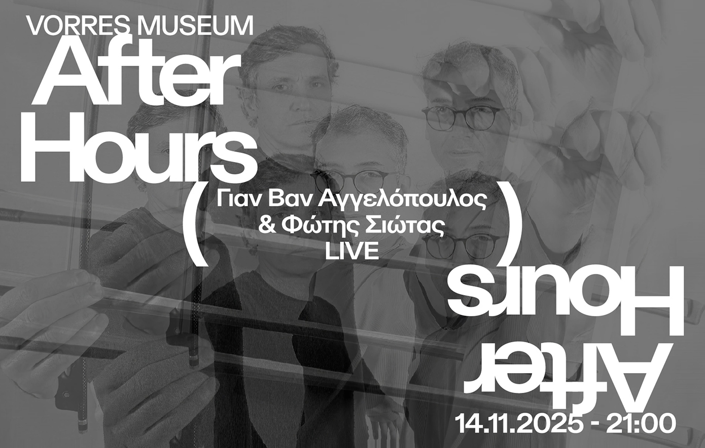 Στο πλαίσιο του «After Hours», μιας σειράς εκδηλώσεων που συμβαίνουν στο Μουσείο μετά το πέρας των ωρών λειτουργίας, αυτή την φορά παρουσιάζεται στις 14 Νοεμβρίου το δίδυμο των Γιαν Βαν Αγγελόπουλου και Φώτη Σιώτα.