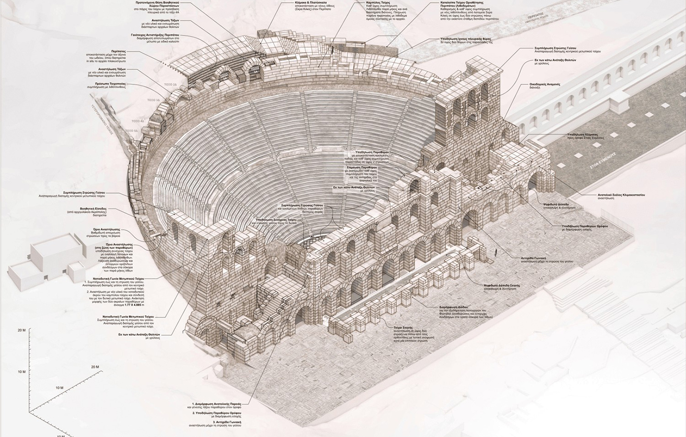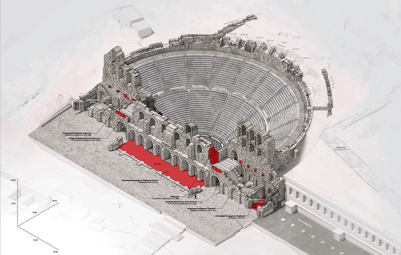 Σε τροχιά πλήρους αναστήλωσης εισέρχεται το Ωδείο Ηρώδου του Αττικού, με στόχο τη θωράκισή του απέναντι στον χρόνο και την αναβάθμιση των υποδομών του.