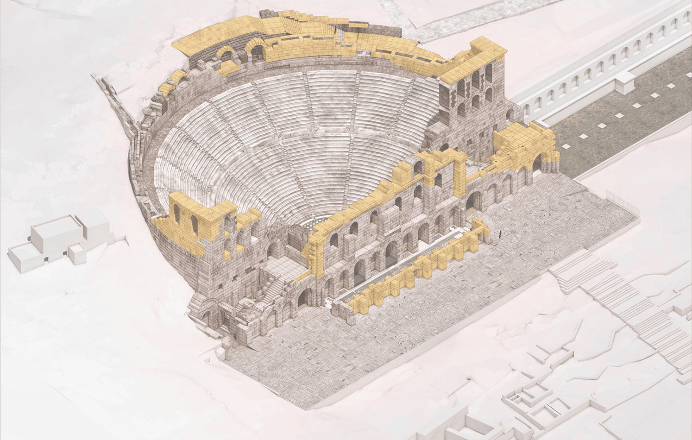 Η εκπόνηση διεπιστημονικών μελετών, για την προστασία και ανάδειξη του Ωδείου Ηρώδου Αττικού, στη νότια κλιτύ της Ακροπόλεως, ήταν το αντικείμενο του ερευνητικού προγράμματος που ανατέθηκε από τη Διεύθυνση Αναστήλωσης Αρχαίων Μνημείων του υπουργείου Πολιτισμού στο Εθνικό Μετσόβιο Πολυτεχνείο, τον Ιούλιο 2025.