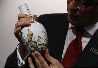 Ένα κινέζικο βάζο Falangcai του 18ου αιώνα που η αξία του εκτιμάται στα 14 εκατ. λίρες παρουσιάστηκε χθες από τον οίκο δημοπρασιών Sotheby’s στο Χονγκ Κονγκ. Αποτελεί το σπουδαιότερο κομμάτι της συλλογής κινέζικων κεραμικών Meiyintang, που θα βγει στο σφυρί στις 7 Απριλίου.