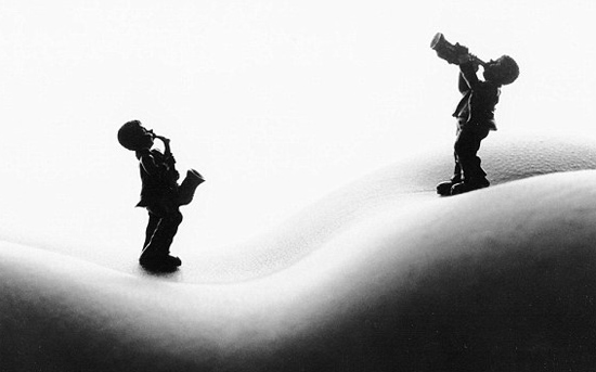 Η ιδέα και η εκτέλεση ανήκει στον 68χρονο καλλιτέχνη Allan Teger, 68, ο οποίος χρησιμοποίησε γυμνά μοντέλα και τα «στόλισε» με δεκάδες μικροσκοπικά ειδώλια για να δημιουργήσει ευφάνταστες ψευδαισθήσεις!
