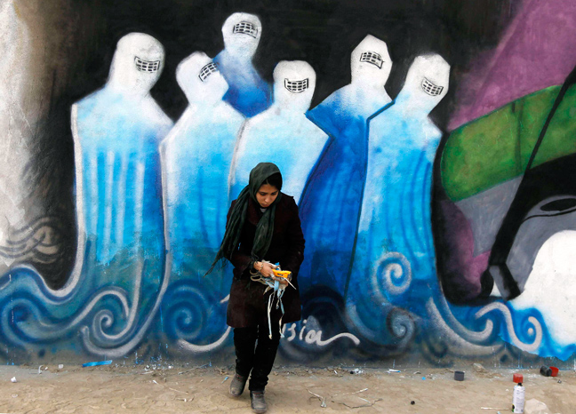Μια ομάδα γυναικών με μπούργκα (φυσικά…) αναδύεται μέσα από τη θάλασσα συμβολίζοντας την καθαρότητα της γυναίκας. Θα ήταν αναμενόμενο να το δούμε κάτι τέτοιο οπουδήποτε, αλλά στην Καμπούλ του Αφγανιστάν η νεοεμφανιζόμενη έκφραση με γκράφιτι προκαλεί εντύπωση.