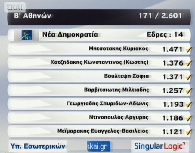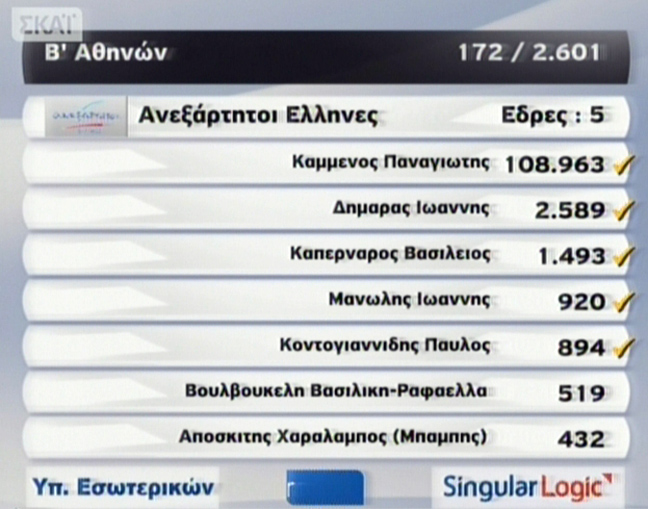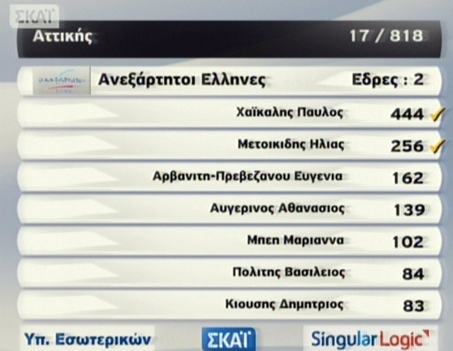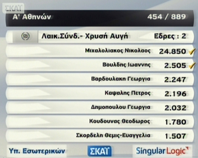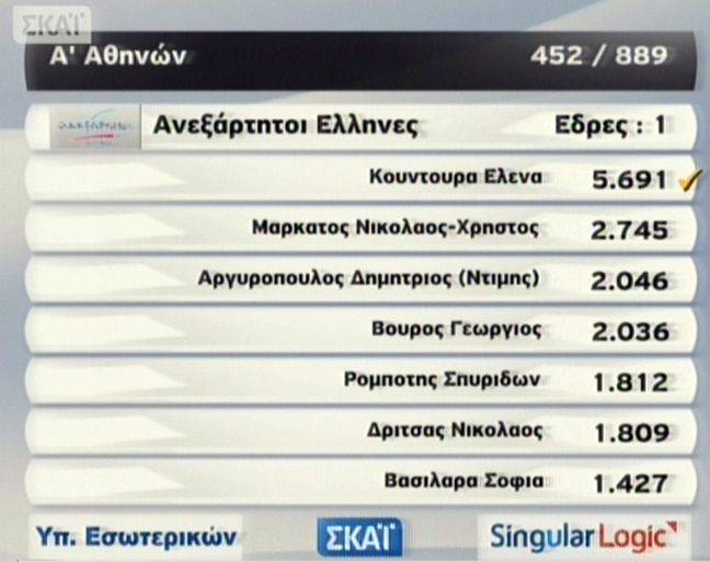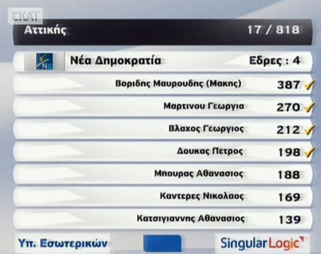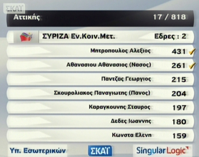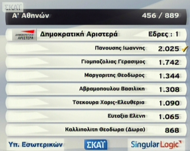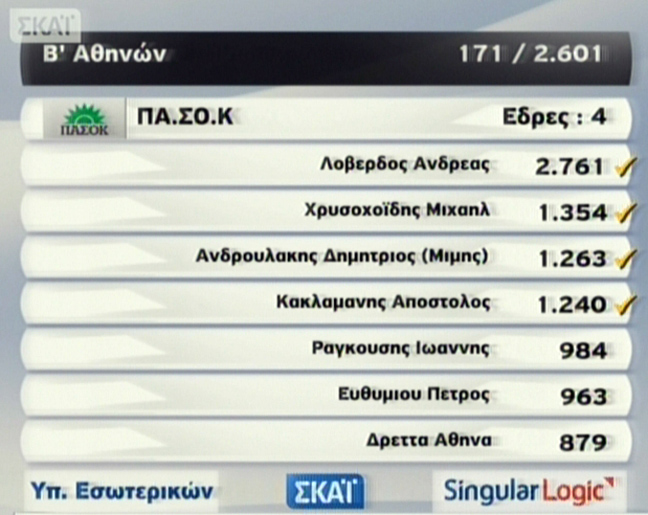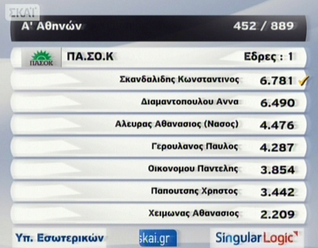 Στην Α’ Αθηνών το ΠΑΣΟΚ κρατά μία μόνο έδρα και προηγείται ο Κώστας Σκανδαλίδης. Ακολουθεί η Άννα Διαμαντοπούλου.