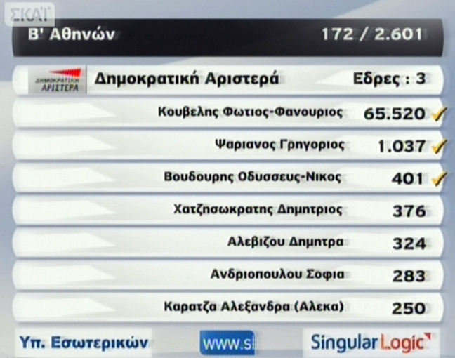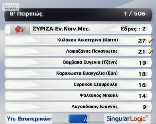 «Σφαγή» κορυφαίων στελεχών του ΠΑΣΟΚ δείχνουν τα αποτελέσματα της εκλογικής αναμέτρησης μετά την κατάρρευση του κόμματος σε όλες τις περιφέρειες της χώρας.