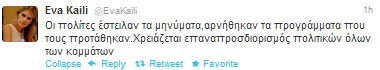 Η όμορφη πολιτικός από τη Θεσσαλονίκη, Εύα Καϊλή ανέβασε το δικό της μήνυμα μέσω του λογαριασμού της στο twitter για τις πολιτικές εξελίξεις και το αποτέλεσμα των εκλογών.