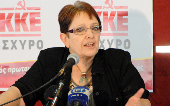 Η Γενική Γραμματέας του παλαιότερου ελληνικού κόμματος κατά το CNBC, ζητά την πλήρη αποχώρηση της Ελλάδας από το ευρώ, την Ευρωπαϊκή Ένωση, την ΕΚΤ και τους λοιπούς ευρωπαϊκούς θεσμούς.