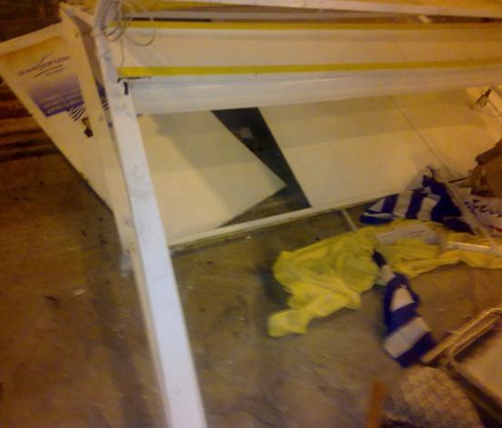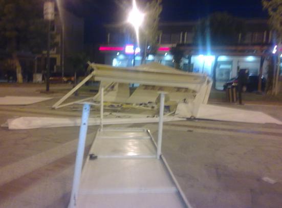 Φεύγοντας οι Χρυσαυγίτες κατέστρεψαν το μοναδικό άλλο περίπτερο κόμματος που υπάρχει στην πλατεία, αυτό των Ανεξάρτητων Ελλήνων, που δεν είχε παρόντες φίλους του κόμματός τους, ποδοπατώντας, μεταξύ άλλων, εκούσια ή ακούσια, και 2 ελληνικές σημαίες στο διάβα τους.