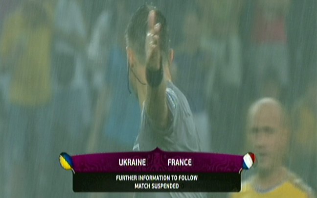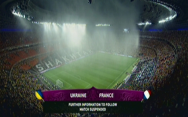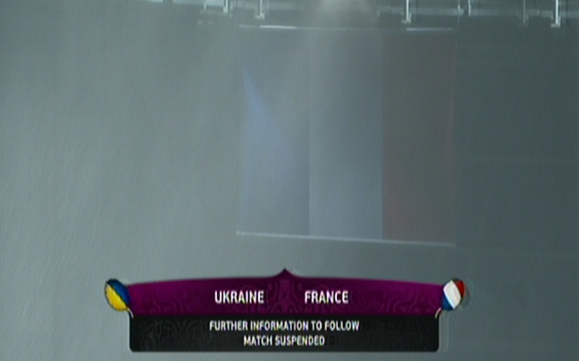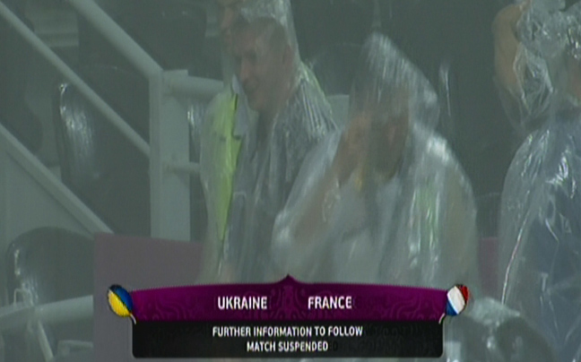 Τη διακοπή της αναμέτρησης μεταξύ των Εθνικών Γαλλίας και Ουκρανίας διέταξε ο διαιτητής, λόγω ακραίας βροχόπτωσης.