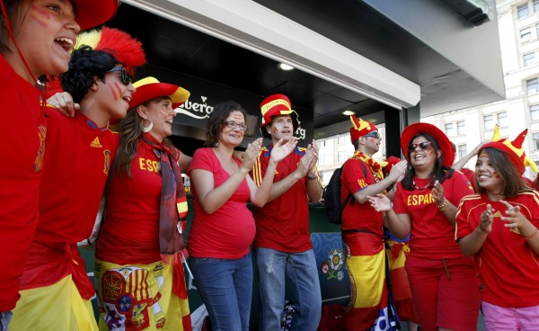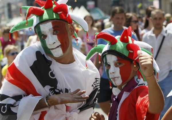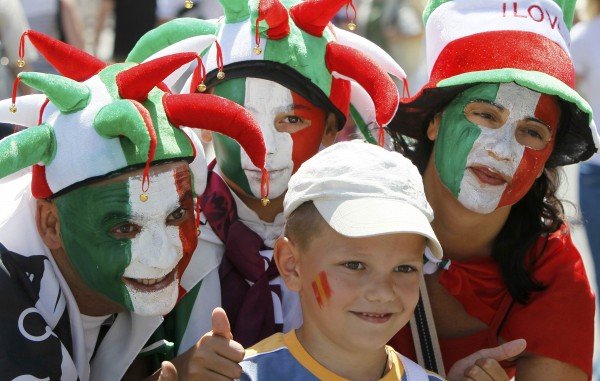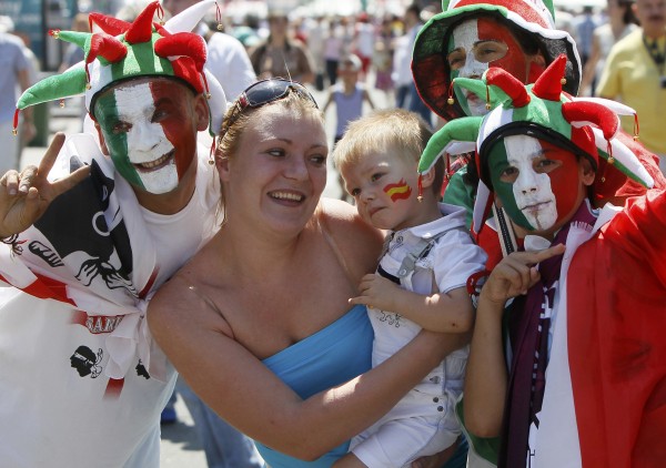 Οι οπαδοί της Ισπανίας υπερισχύουν αριθμητικά, αλλά οι γνωστοί φωνακλάδες Ιταλοί κάνουν αισθητή την παρουσία τους.