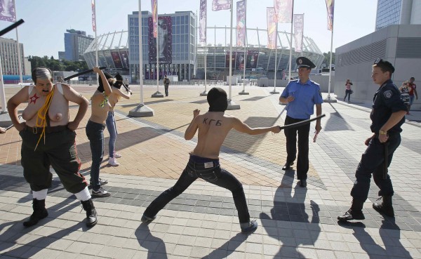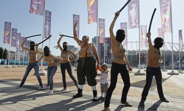 Ωστόσο, την παράσταση έκλεψαν για ακόμα μία φορά οι γυμνόστηθες διαδηλώτριες της FEMEN, που διαμαρτύρονται για την αύξηση του σεξο-τουρισμού στη χώρα λόγω της διοργάνωσης.